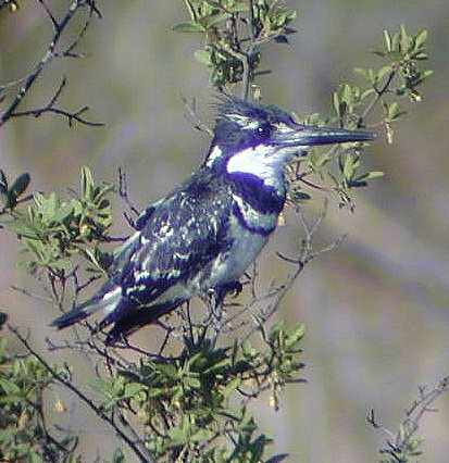 A common and striking kingfisher of wetlands, rivers and coastlines. The Pied Kingfisher is well known for it's habit of hovering above the water, before making a sudden and direct dive into the water below.