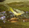 Birding and Tour News:Grey Wagtail present at Magoebaskloof.While on a trip to the Magoebaskloof area on 28 January 2004 - we had the opportunity to see the Grey Wagtail which has been present at Debegeni Waterfall, in the Magoebaskloof area. The bird was easily found just below the Debegeni Waterfall (near the wooden bridge to the picnic site) and seemed to be keen to return to this area of the river.It was fairly tame and has characteristic dark back, yellow breast, belly and undertail, and a long tail with a very quick and persistent wagging action, which makes for difficult photography. Nevertherless we were able to obtain some acceptable digital shots by digiscoping, some of which are shown on this page - click the thumbnails for larger images. ![]() ![]() ![]() ![]() ![]() On the same trip we visited one of two local Bat Hawk sites and observed a juvenile Bat Hawk doing some sunbathing on an open branch. Click on the thumbnail for a larger image. ![]() Etienne Marais - 29 January 2004 |